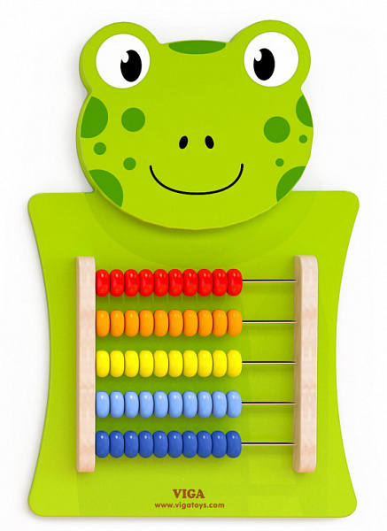 Панель «Лягушка-счеты» предназначена для обучения счету, развивает математические способности и различные навыки и стратегии вычисления. Предназначена для групповых и индивидуальных занятий. Панель выполнена в виде лягушки и представляет собой настенные счеты: • 5 рядов костей смонтированы на горизонтальных металлических направляющих, которые в свою очередь вмонтированы в 2 вертикальных деревянных бруска. • на каждой металлической направляющей расположено по 10 костей одного цвета. • общее кол-во костей 50 шт. По углам панели размещены отверстия для крепления панели к стене, к пособию прилагаются комплектующие для монтажа на стену и инструкция по монтажу.