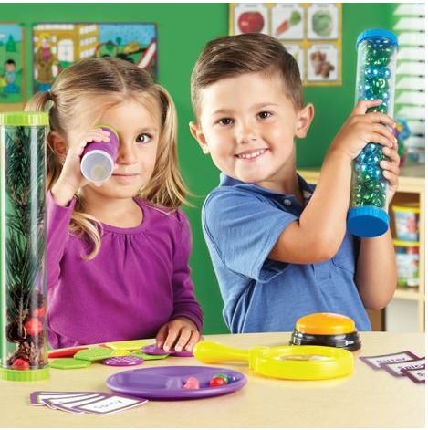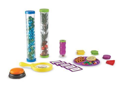 Лабораторный набор для маленьких ученых - вовлекает в интересную познавательную деятельность, которая способствует более раннему развитию всех чувств: зрение, обоняние, осязание, вкус, слух. Предназначен для индивидуальных и групповых занятий Состав набора: - Кнопка «Ответ готов» (высота 4 см, диаметр 9 см) - Калейдоскоп (длина 11 см, диаметр 4 см) - Большая Лупа ( длина 20,5 см, диаметр 11,5 см) - Тарелочка (диаметр 16 см) с разделителями для изучения вкусовых ощущений (например, сладкий, соленый, кислый) - 2 сенсорные трубки (высота 30,5 см, диаметр 5,5 см ). - Тактильные плитки (4 формы в 3х экземплярах) - Инструкция.