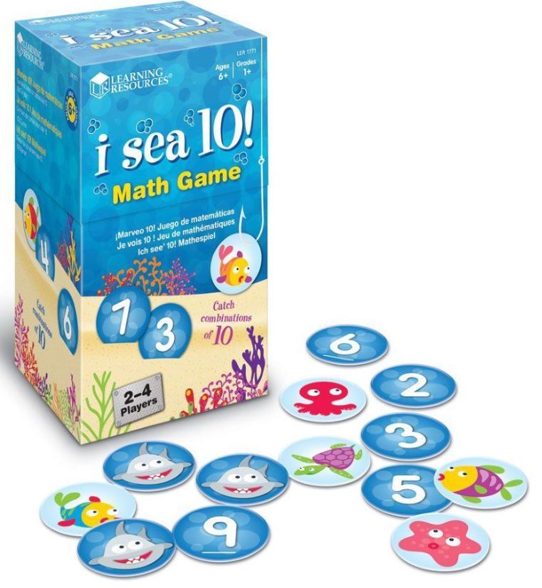 Игра предназначена для тренировки устного счета, способствует развитию внимания и скорости мышления. Цель игры - собрать комбинацию "10"! Игроки по очереди переворачивают карты, чтобы показать цифры и выкрикивают: "10!" когда видят комбинации чисел, которые вместе составляют 10. Собирают наибольшее количество комбинаций 10 и выигрывают! Состав набора: 100 карточек (90 числовых карт и 10 карт морских животных). Карточки в виде круга диаметром 4 см.