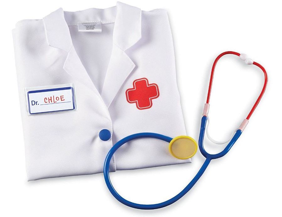 Набор для ролевых игр: скорая помощь. Костюм врача легко надеть и снять, используя удобные для ребенка кнопки. Развитие навыков: воображение, ролевые игры, социальные навыки. Состав: костюм врача, стетоскоп, бейджик