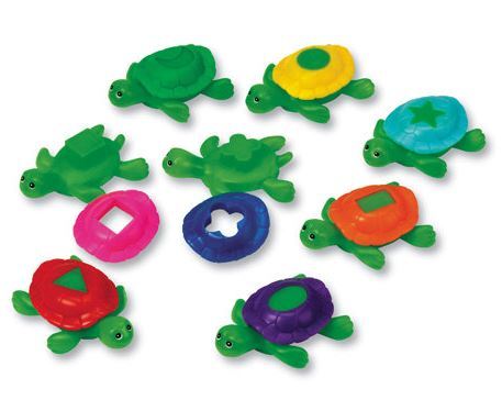 Игра для центра воды и песка «Черепашки с фигурками» предназначена для развития мелкой моторики, математических способностей и речи ребенка. С помощью игры ребенок учится считать, изучать геометрические формы и цвета. Игра с водой не только вызывает интерес, но и действует успокаивающе на малышей. Набор состоит из 16 деталей: • 8 черепашек: салатового цвета. • 8 съёмных панцирей: оранжевого, жёлтого, синего, фиолетового, голубого, розового и зелёного цветов. Каждая черепашка с разной формой на спинке и такой же формы отверстие на цветных съёмных панцирях: луна, звезда, крест, круг, квадрат, прямоугольник, треугольник и овал. Подберите для каждой черепашки свой панцирь, "а-ля, сортировщик". Размер черепашек: 9 х 6,5 см.